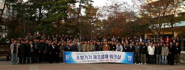 소방산업진흥법 시행을 앞두고 산업진흥을 위한 정책들이 예고되면서 관련인들의 이목이 집중되고 있는 가운데 소방기기 제조업체와 한국소방검정공사의 실질적 정보교류 및 협력을 위한 ‘2008 소방기기 제조업체 워크샵’이 개최됐다.