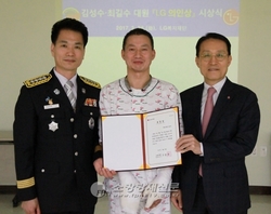 이날 한강성심병원을 방문한 LG복지재단 남상건 부사장은 용산소방서 김성수, 최길수 대원에게 각각 의인상 표창장과 상금을 직접 전달하고 대원들을 격려했다.