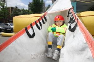 ▲ 이동안전체험교실에서 새일문유치원 어린이가 구조체험을 하고 있다 © 심재관 객원기자 |