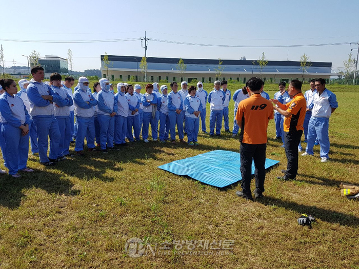 훈련 중점사항으로 화재 초기 진화 및 대피요령, 자위 소방대 임무숙지 여부 등을 확인했으며 심폐소생술 및 외국인 근로자 소방시설 사용 매뉴얼 책자 배부 등을 통한 소방안전교육이 병행됐다.