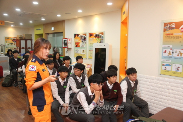 이번 체험교실에 참가한 전동중학교 학생들은 소방관이 하는 일과 갖춰야 할 소양과 체력, 채용과정 등에 대한 설명을 듣고 화재 현장에서 필요한 방화복과 공기호흡기 등 개인안전장비 착용 체험, 소소심(소화기ㆍ소화전ㆍ심폐소생술)익히기 교육ㆍ체험을 해봄으로써 소방관이라는 직업에 대해 탐구할 수 있는 계기가 됐다.