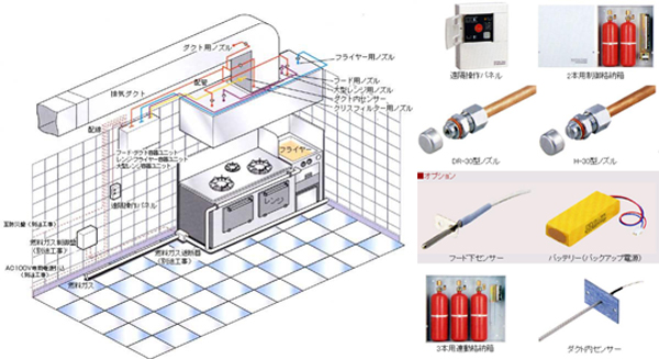| ▶ 일본에서 상용화 되어 음식점에 설치되고 있는 주방용자동소화시스템 |