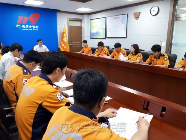 속초소방서(서장 김영조)는 14일 오전 9시 30분 소회의실에서 각 부서장과 담당자 등이 참석한 가운데 2018년 국민행복 소방정책 추진상황 보고회를 실시했다.