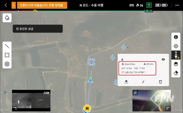 물론 M30T는 FPV카메라 외에도 전 방향의 장애물을 감지하기 위한 센서가 있고 성능도 뛰어나다. 하지만 장애물 센서의 경우 주변 장애물 특성이나 환경에 따라 정확도가 떨어질 수 있다.